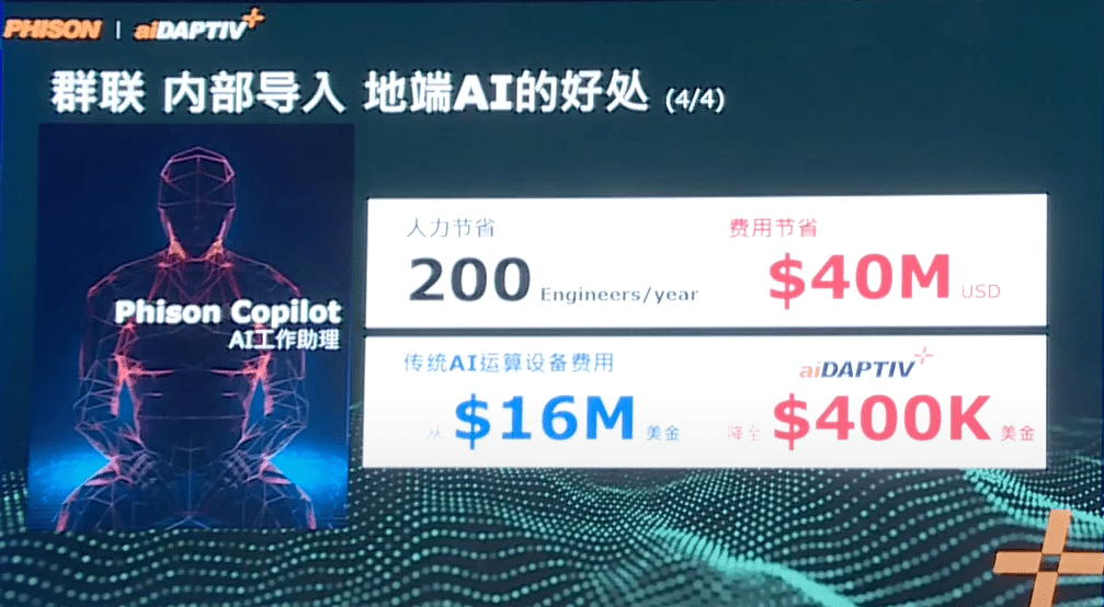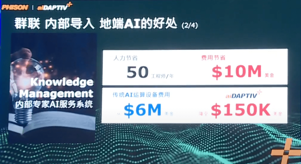 群聯電子的 aiDAPTIV+ 方案,通過降低AI技術應用的門檻,讓更多企業和教育機構能夠享受AI技術帶來的效益。無論是提升企業運營效率,還是培養未來的AI人才,aiDAPTIV+ 都是一個智慧且具成本效益的選擇。